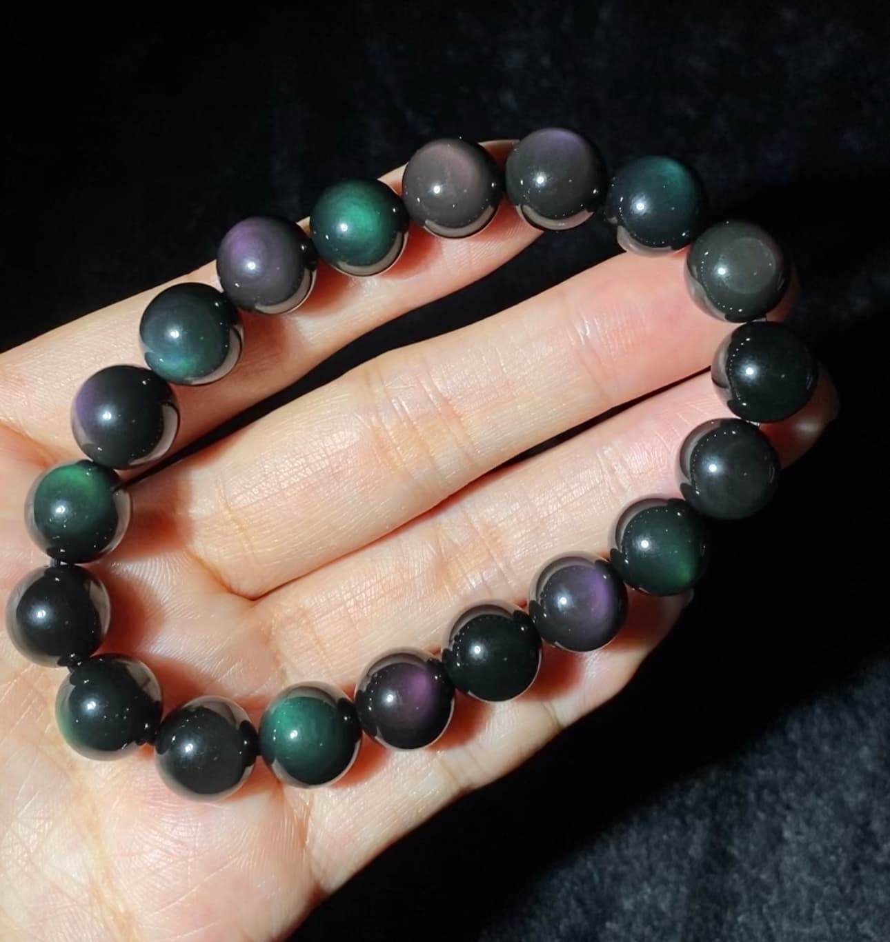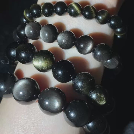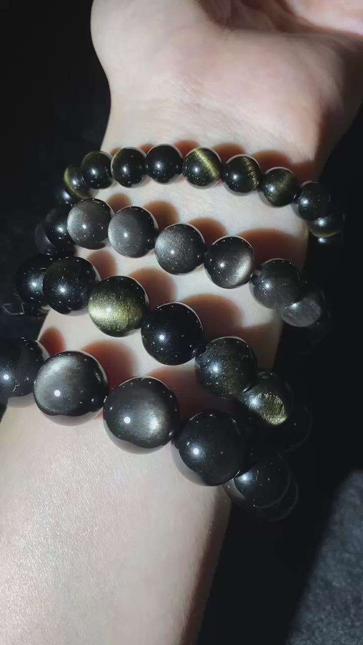 Highest! AAAAA Grade Natural Obsidian Rainbow/Black/Silver/Gold Beaded Bracelet for Men and Women