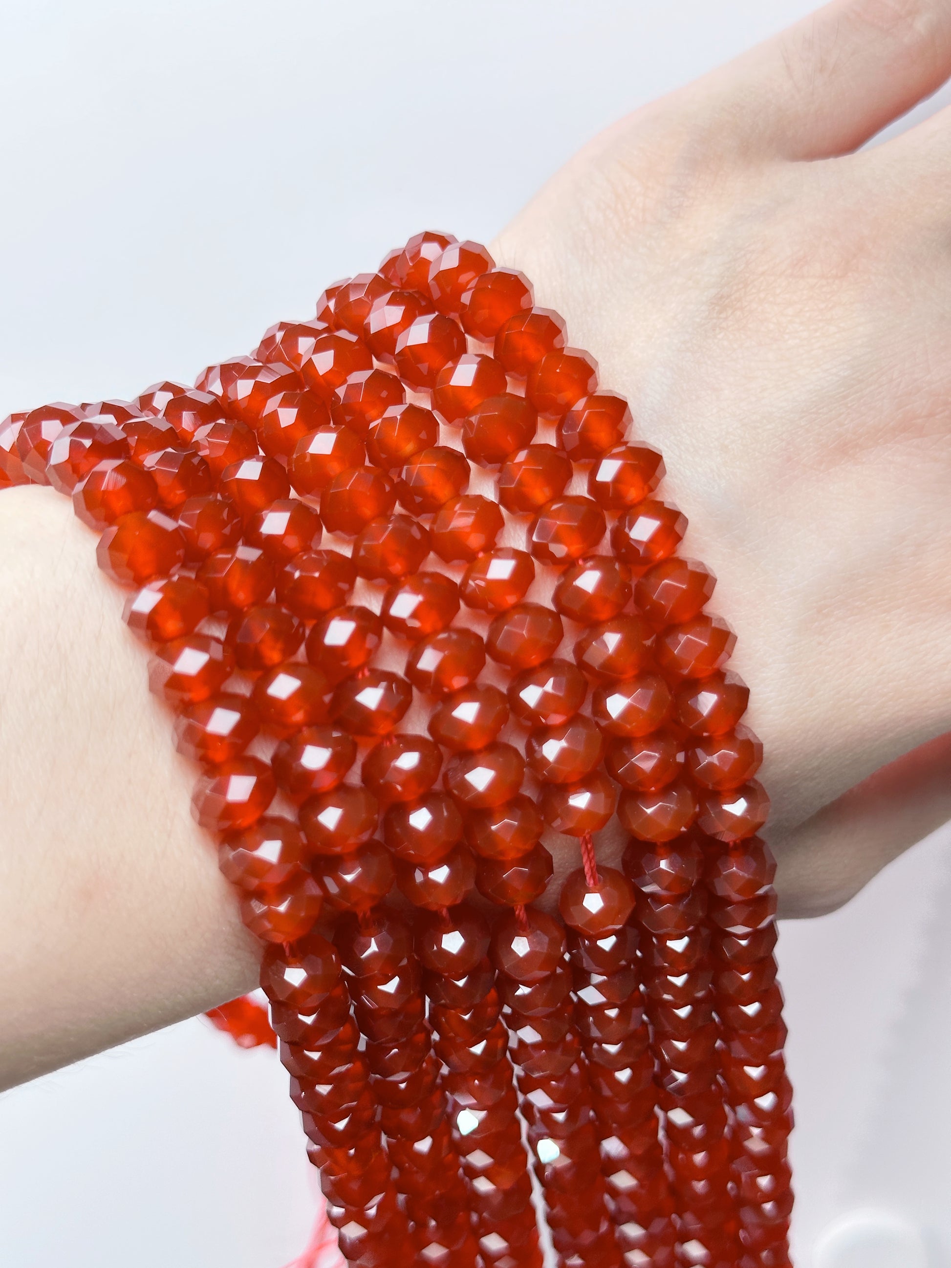 Natrual AA Carnelian Bead Strand DIY Beaded Rhoundelle Faceted 8mm