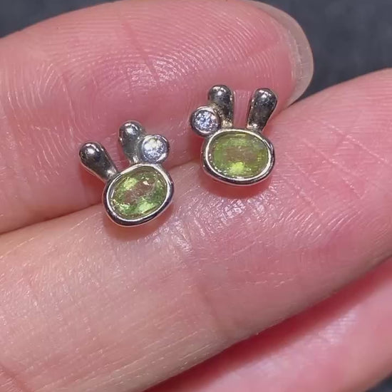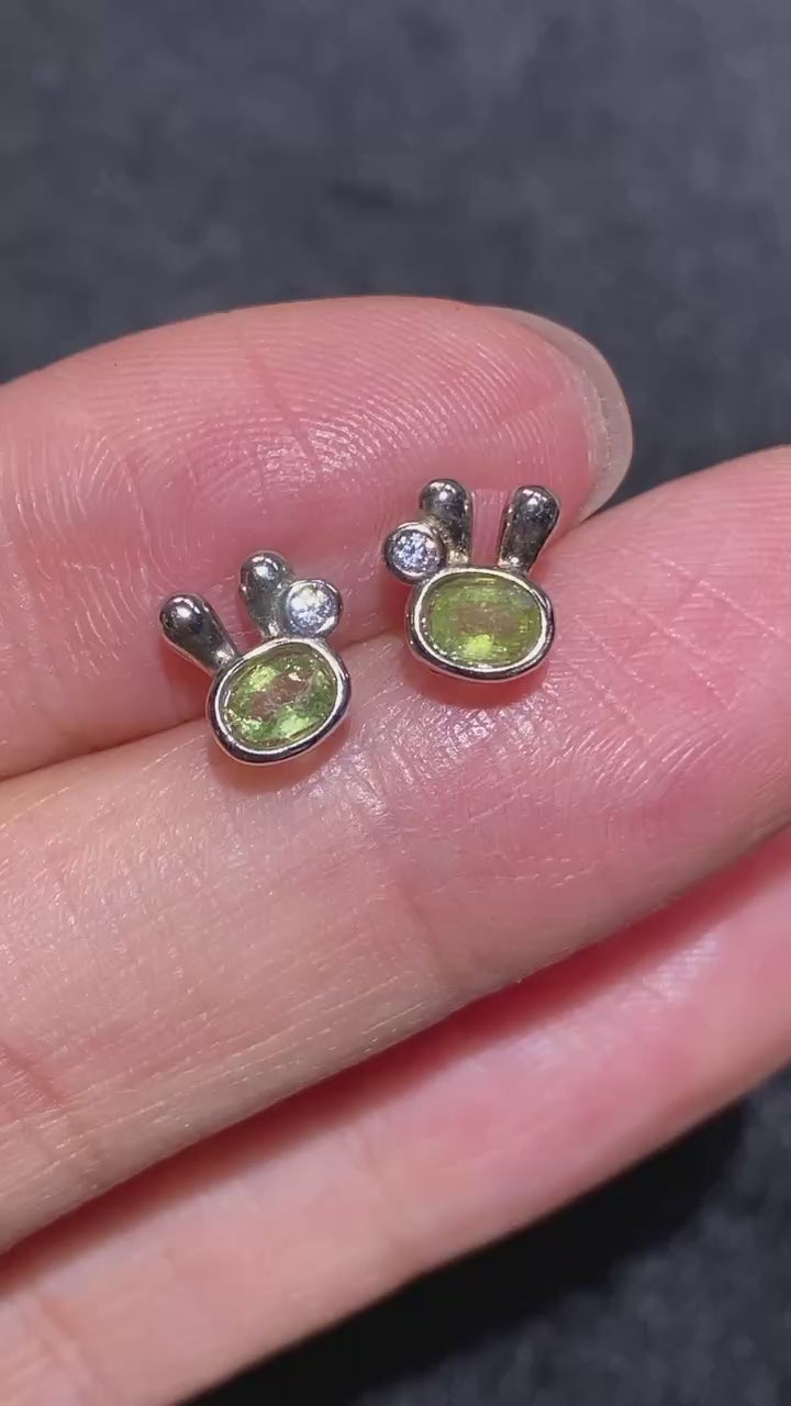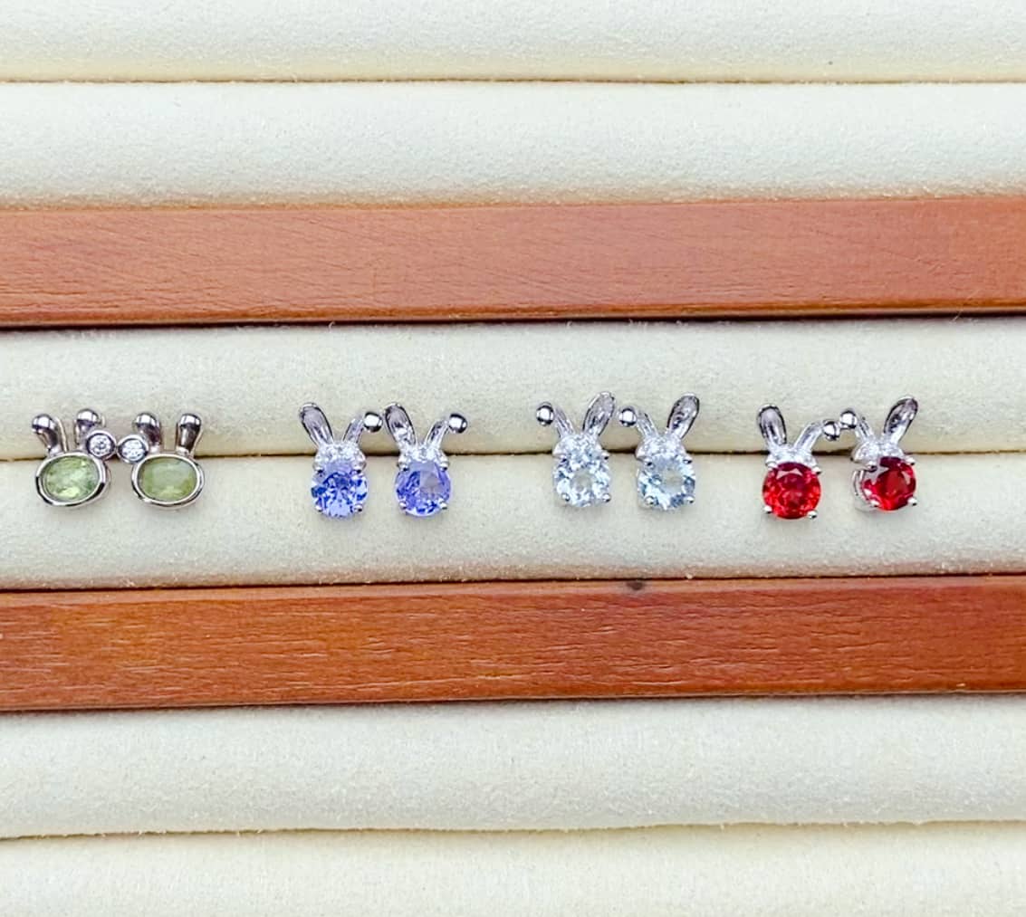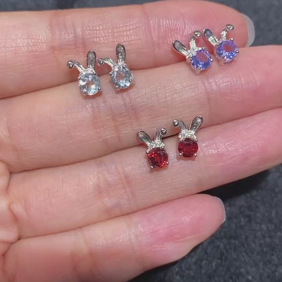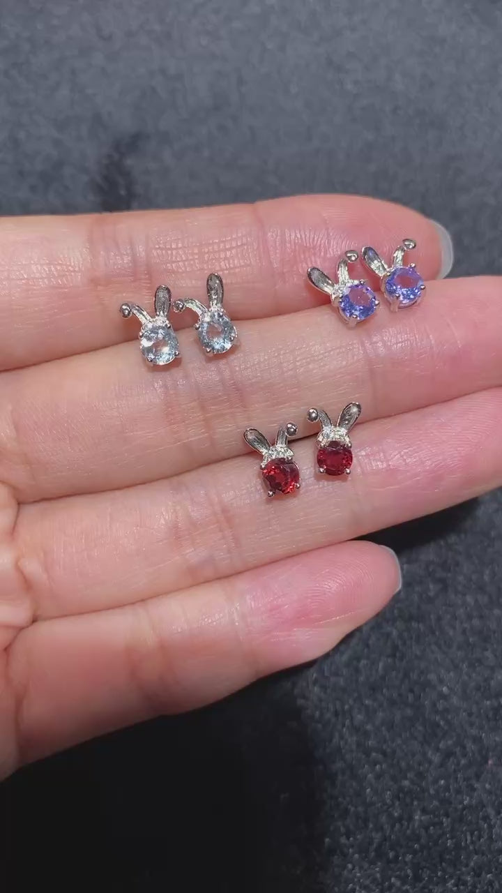 Sterling Silver Aquamarine Garnet Peridot Tanzanite Bunny Earring Stud