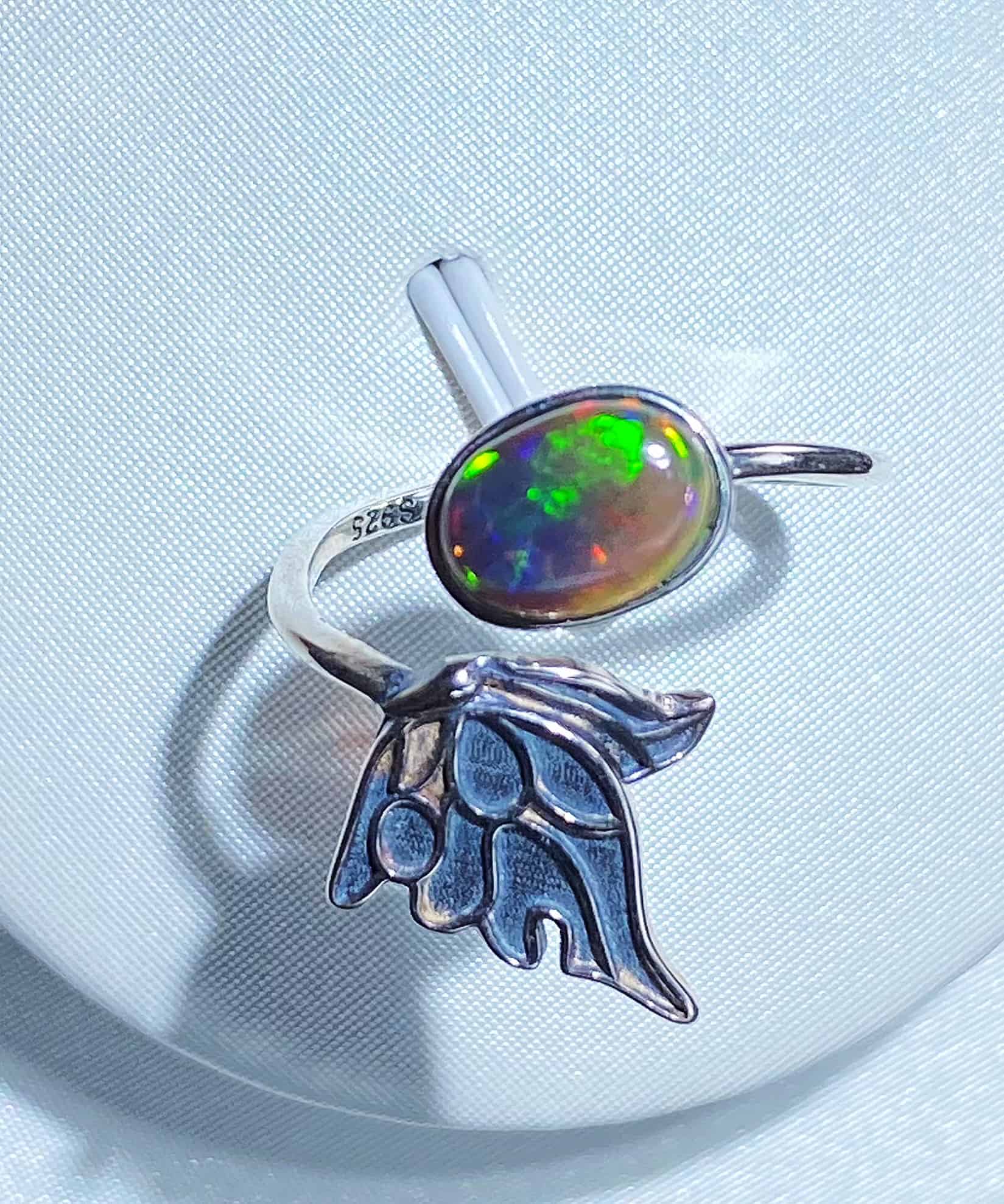 Sterling Silver Ethiopian Opal Adjustable Ring