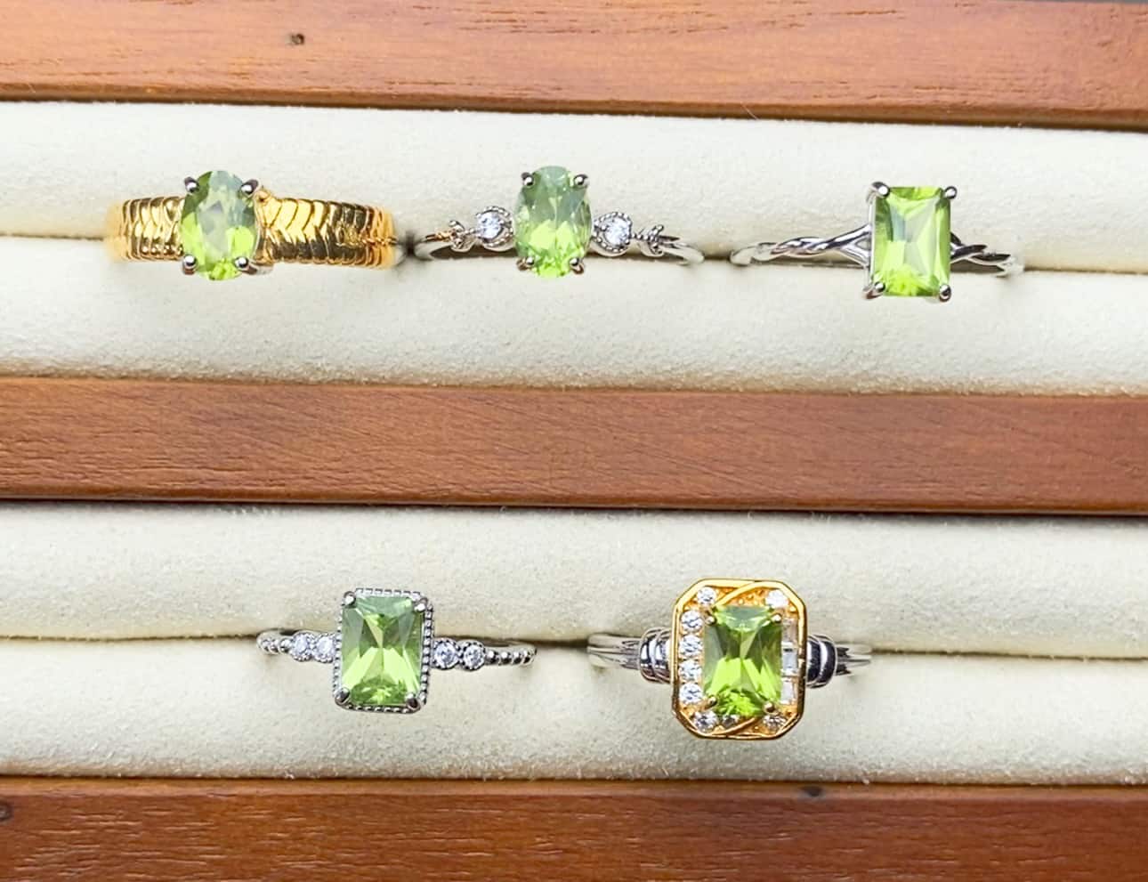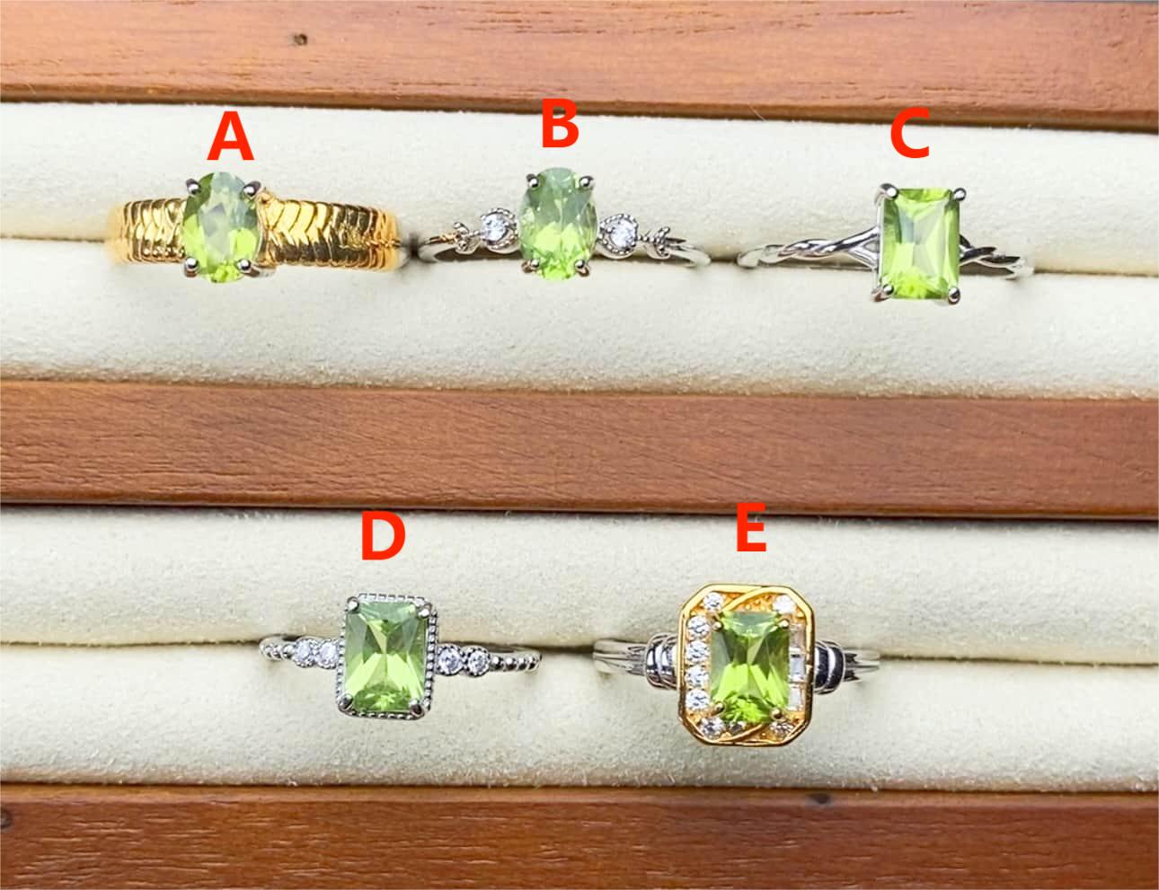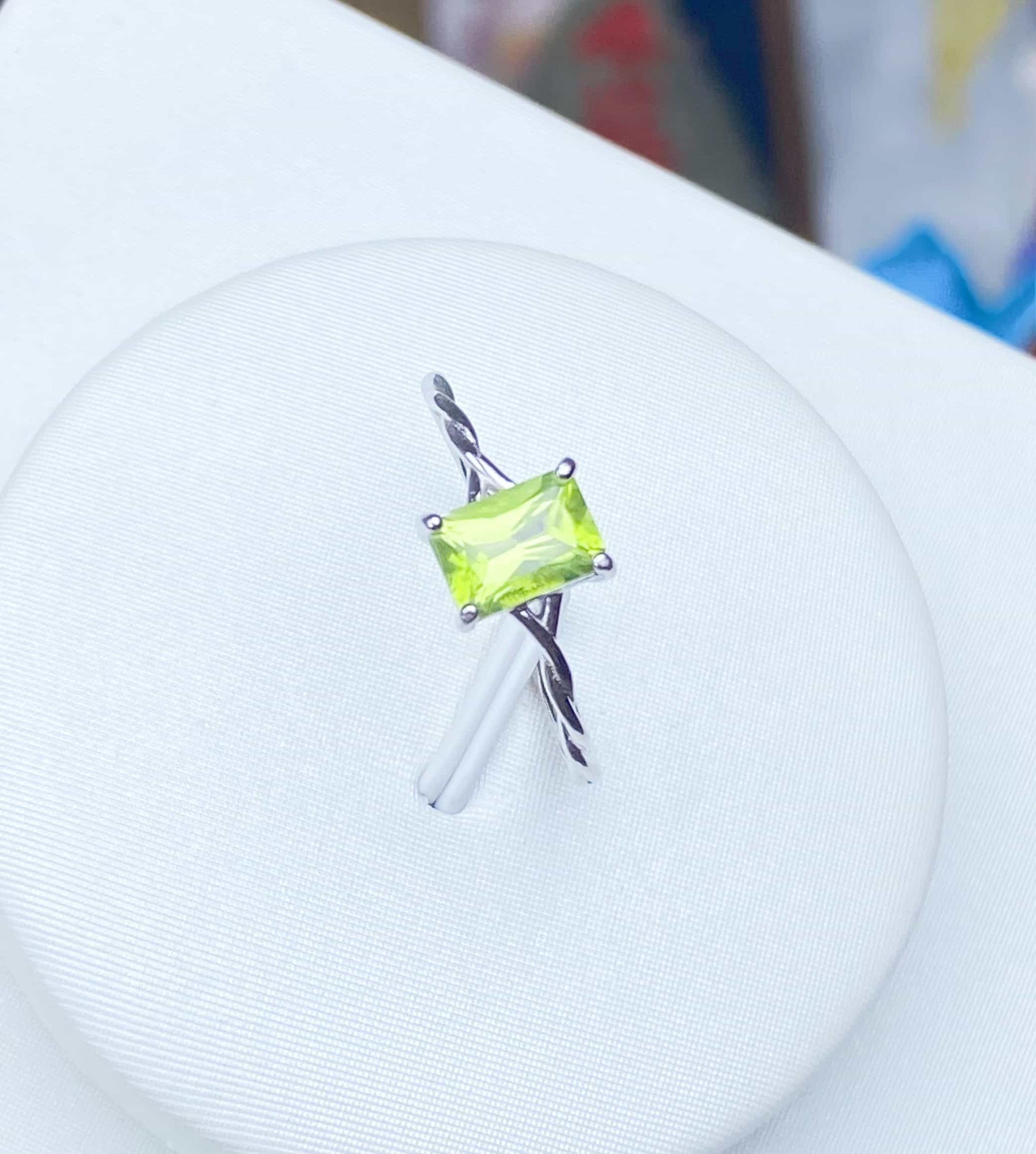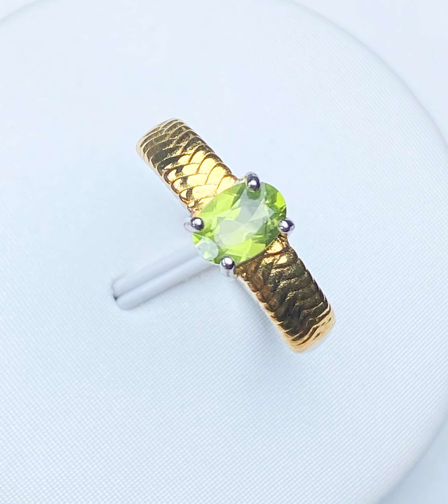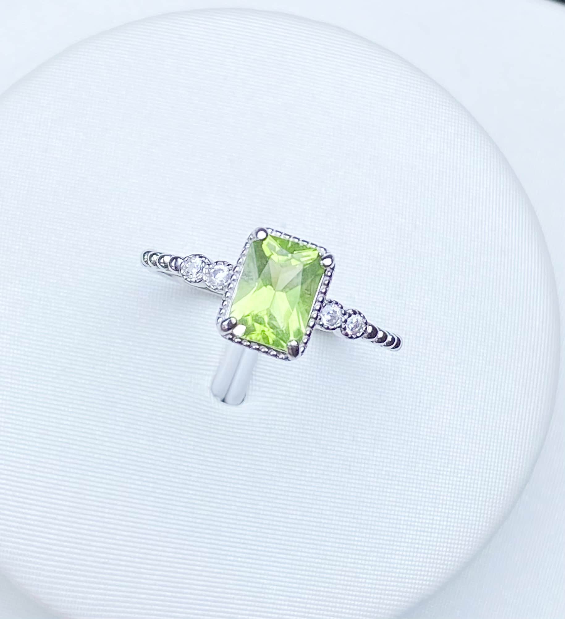 Sterling Silver Peridot Ring Adjustable Silver Gold with Zircon Ring