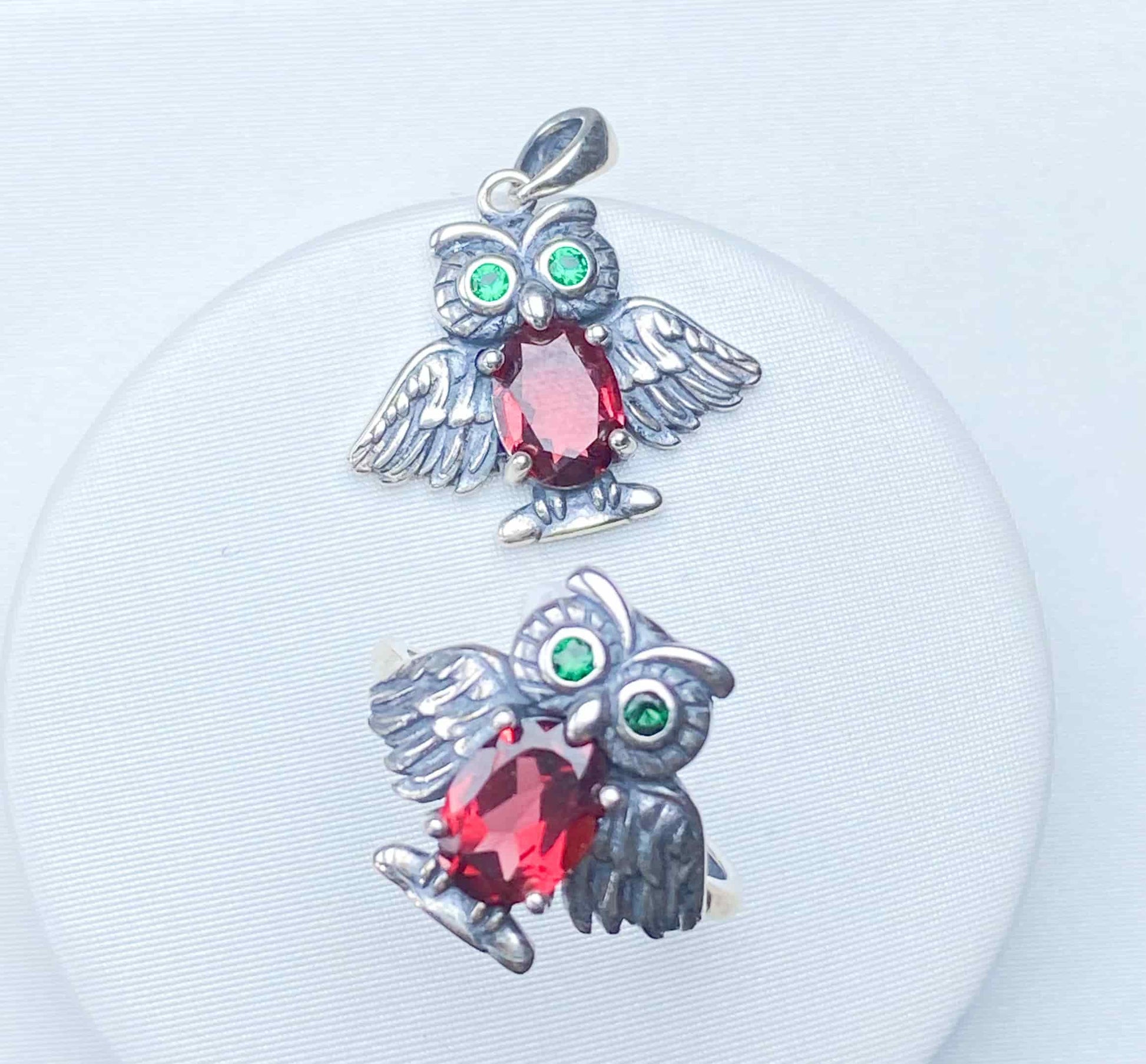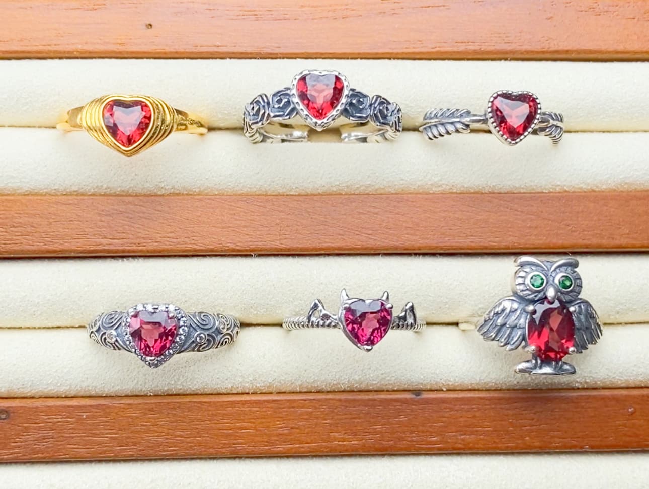 Sterling Silver Red Garnet Heart Adjustable Ring