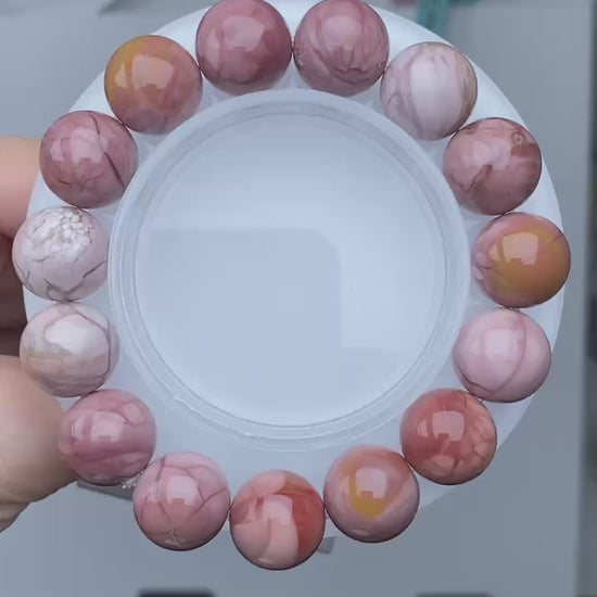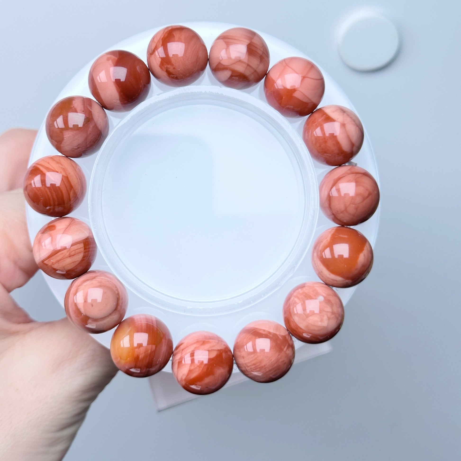 STUNNING! High Quality Orange/Pinky Alashan Agate Bracelet 12mm-14mm